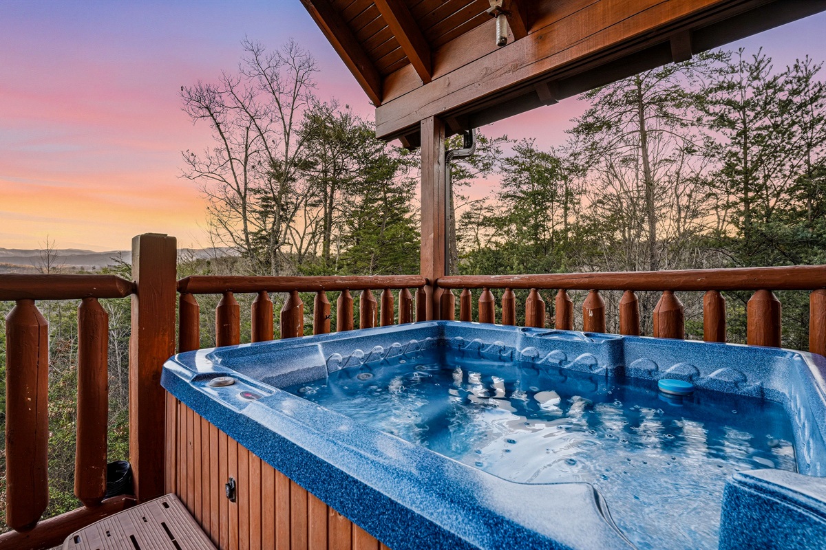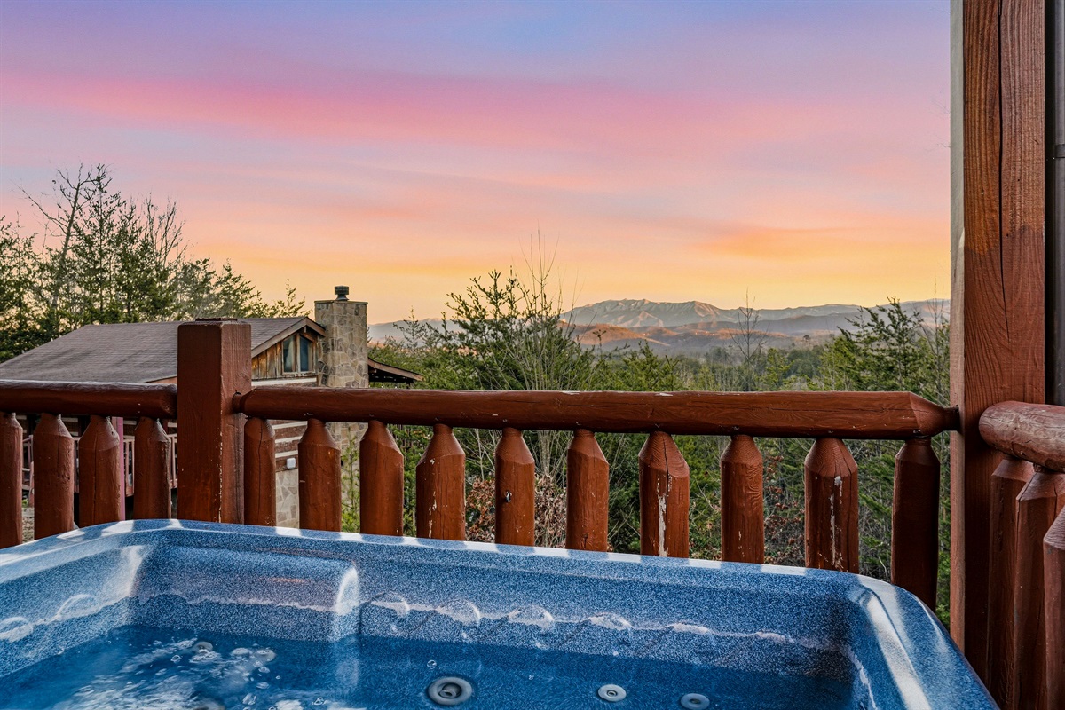 - Private hot tub with serene mountain views