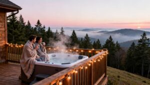 Stay in a little slice of Smoky Mountain Heaven! Our Heaven’s Gate cabin can sleep up to 8 guests, and still have plenty of room so you won’t feel cramped. The cabin is just minutes away from Dollywood, but still has a calming atmosphere and a mountain view from the deck. So you can relax one evening on the deck in the warm hot tub! The best part about this cabin is the land around it. There’s plenty of room for your dog to run around and stretch their legs! Moreover, if you bring kids along they’ll also have plenty of room to play, so you may want to bring a soccer ball or frisbee along!