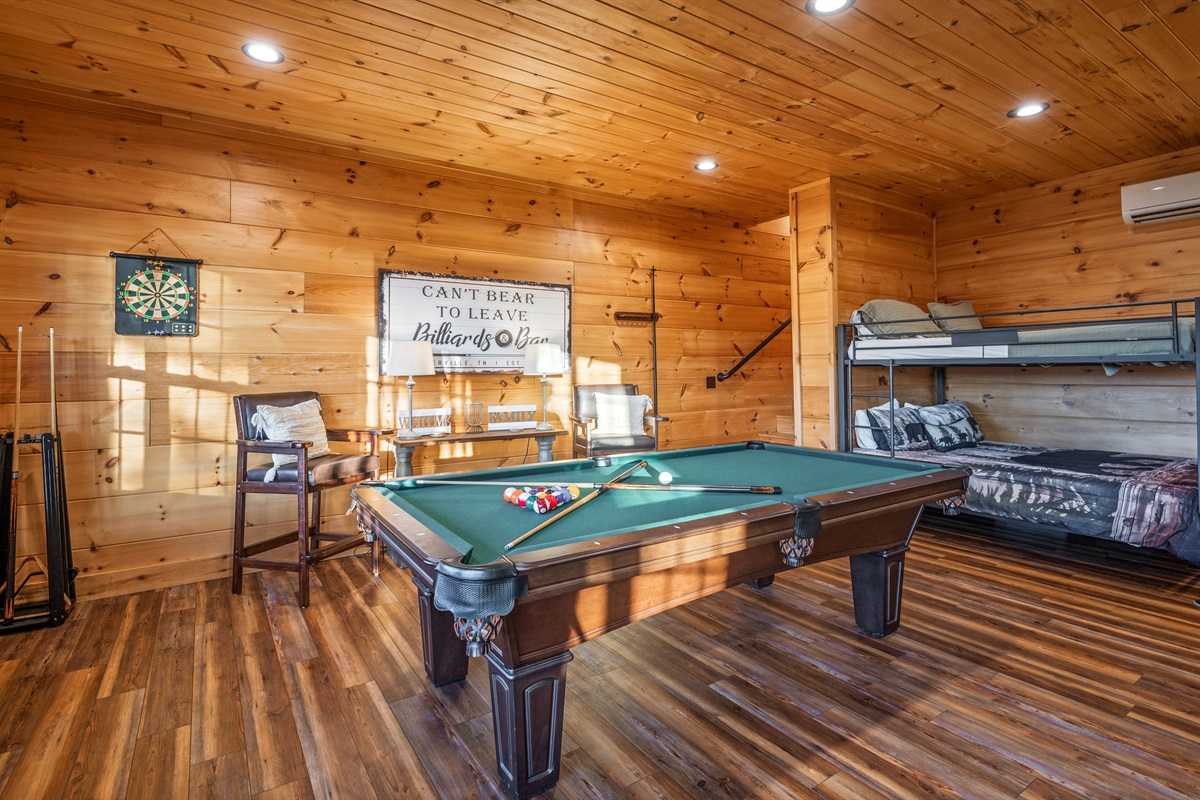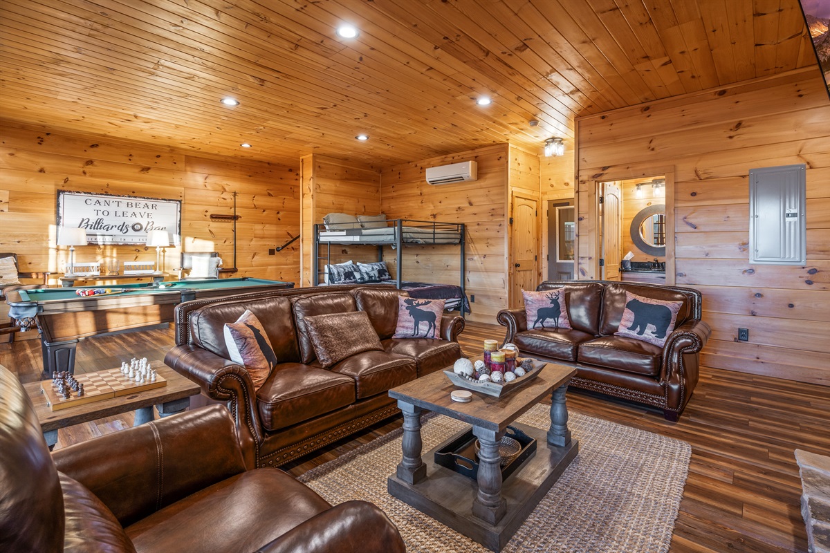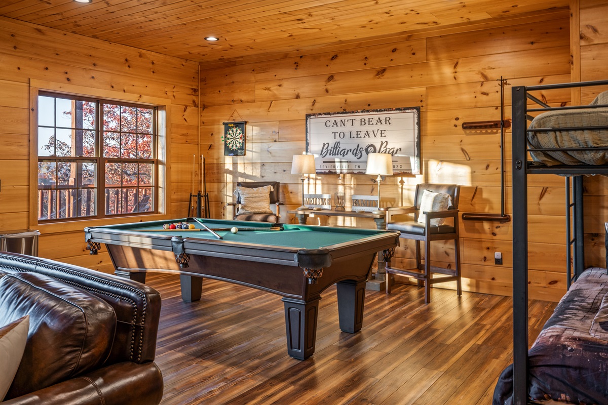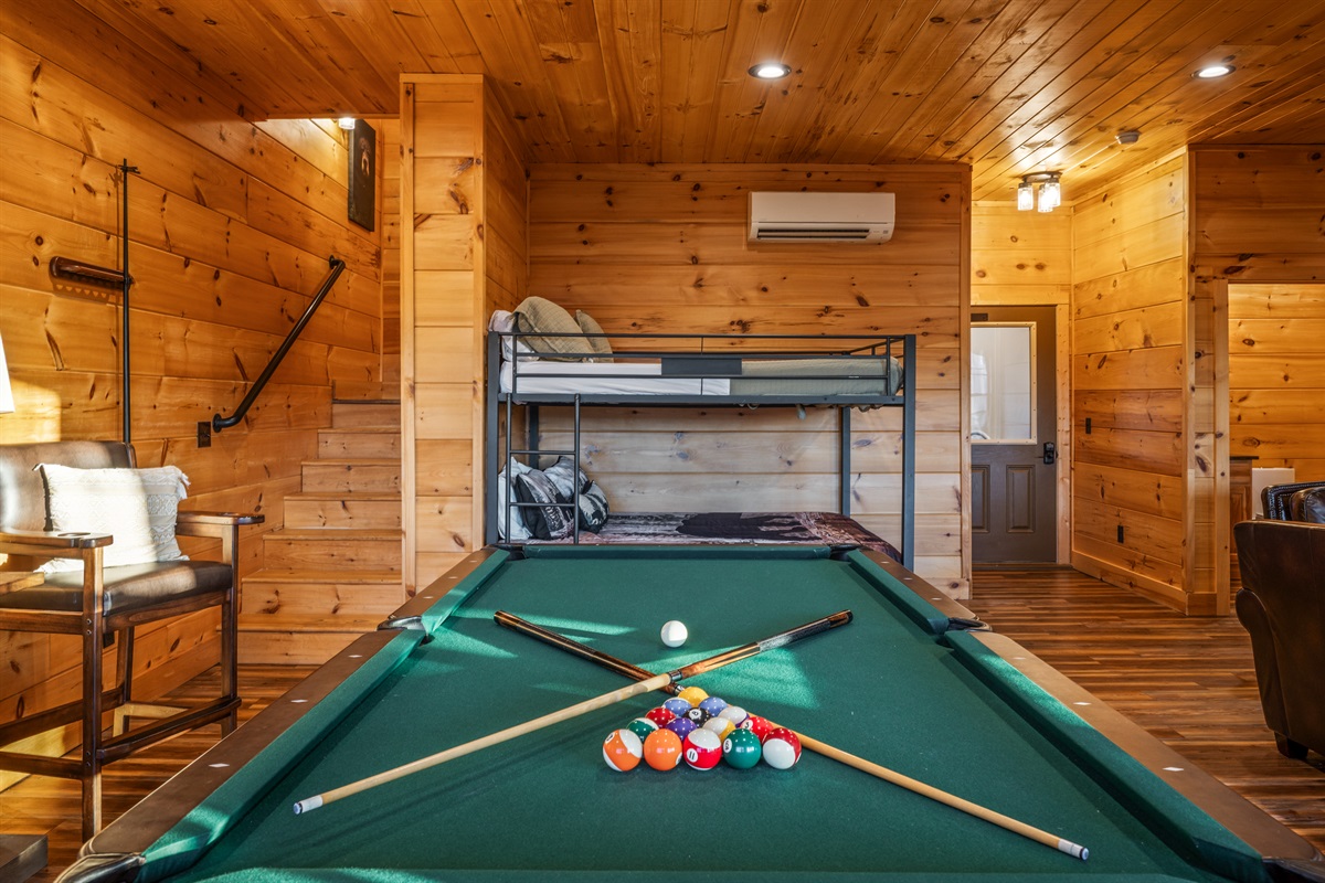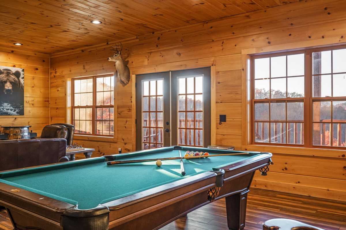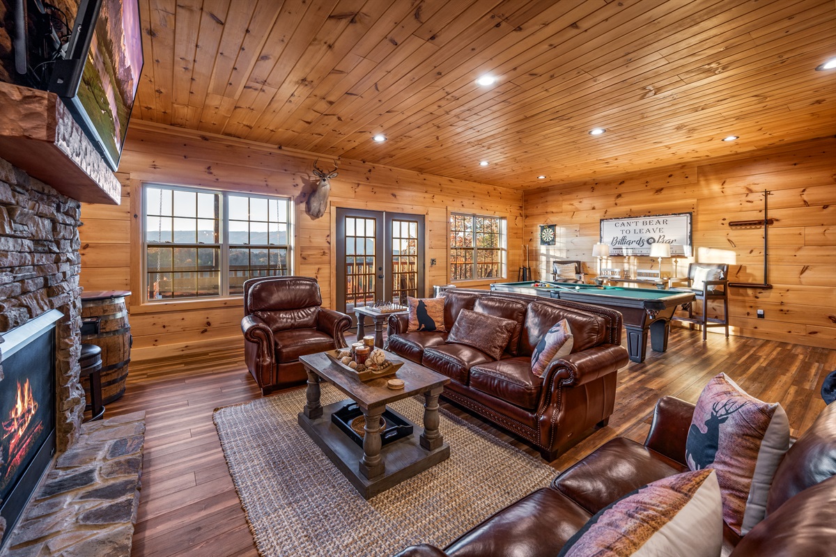 This cabin is all about connection — splash in the indoor pool, challenge friends to a pool game, laugh over late-night board games, or gather around the fire for quiet evenings together. The combination of breathtaking views, high-end amenities, and thoughtful design makes it a property you’ll want to return to year after year.