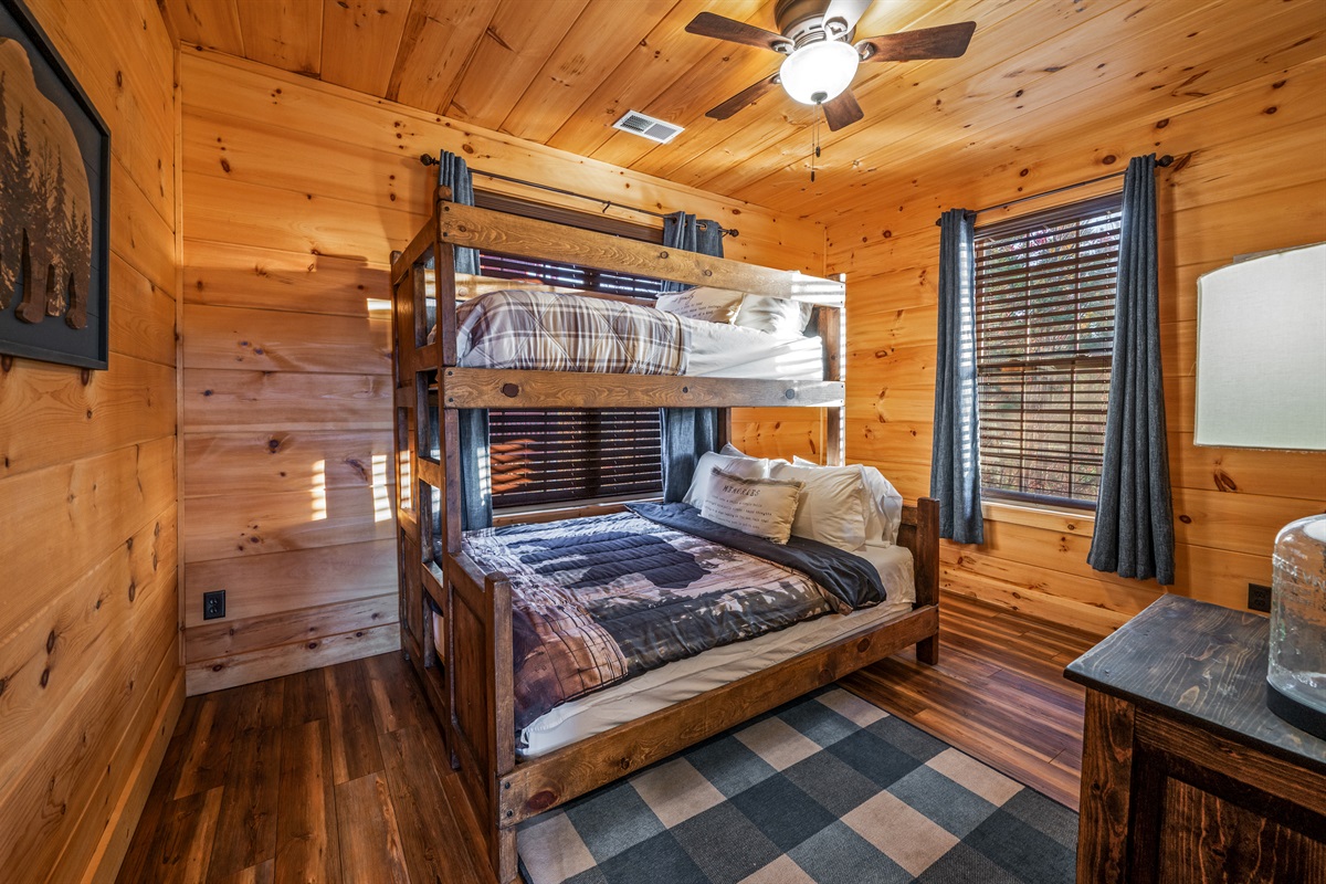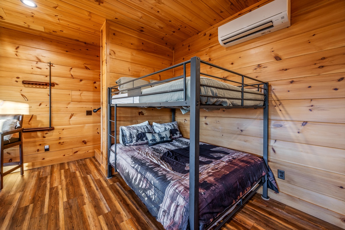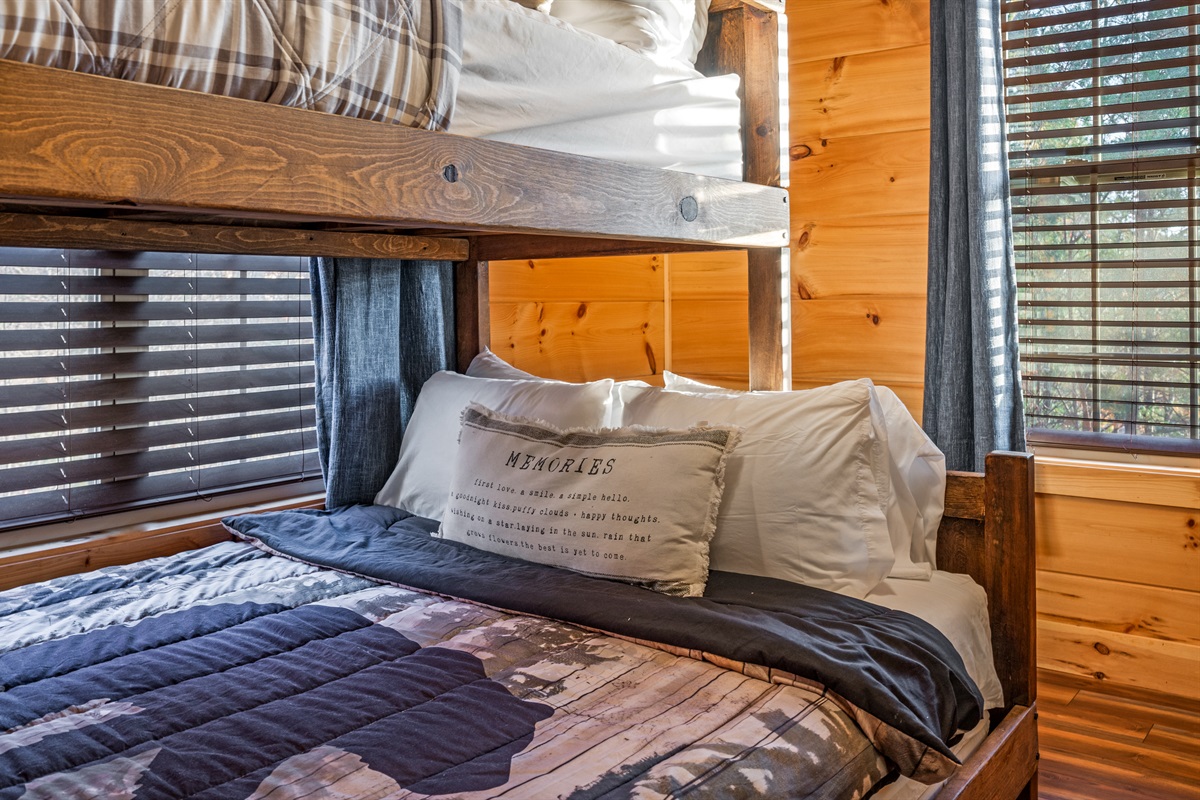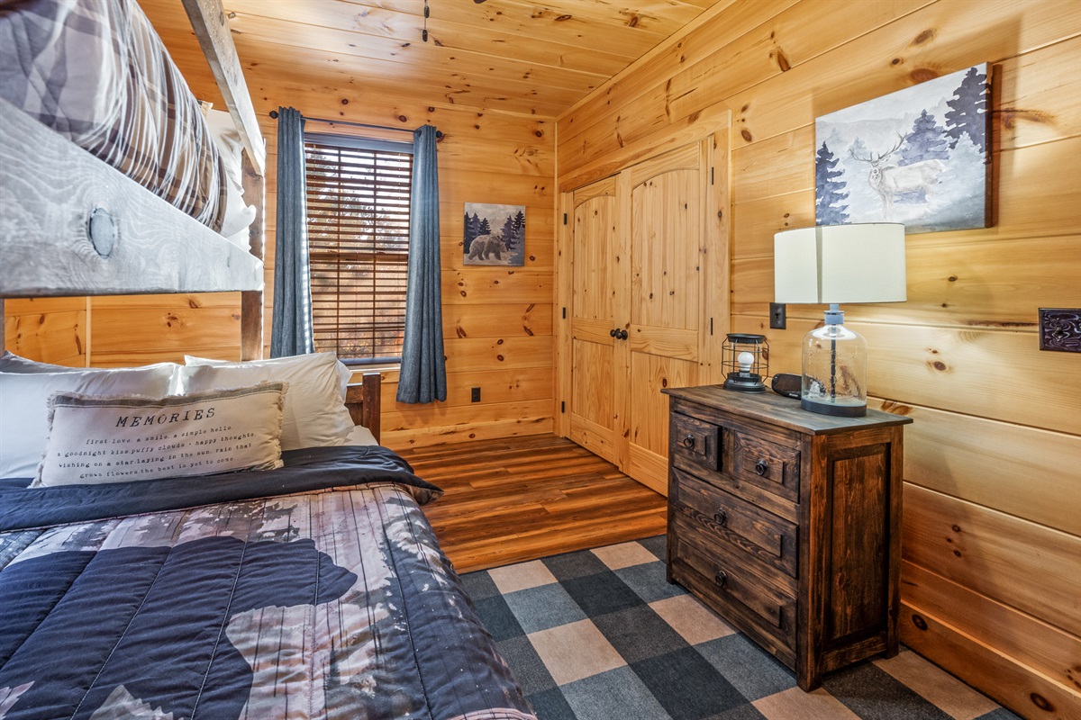 Main Level: King master suite with ensuite bathroom + bunk room (queen/twin).