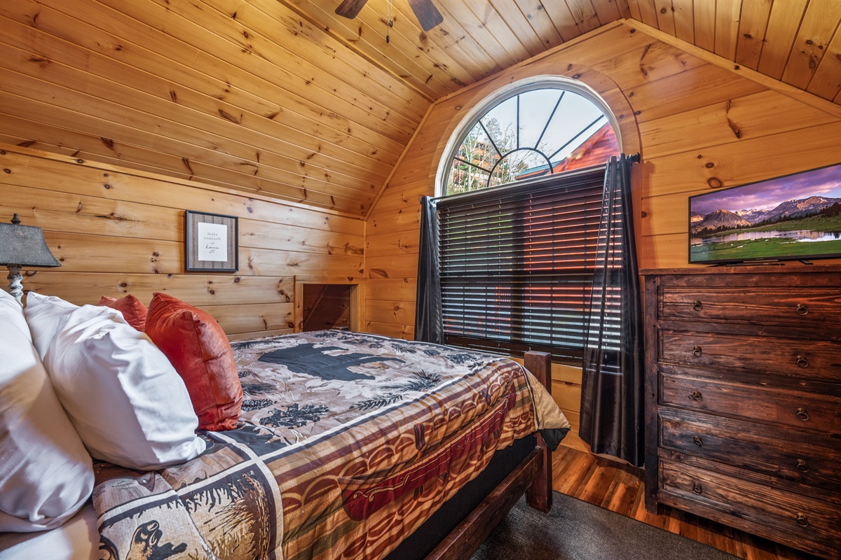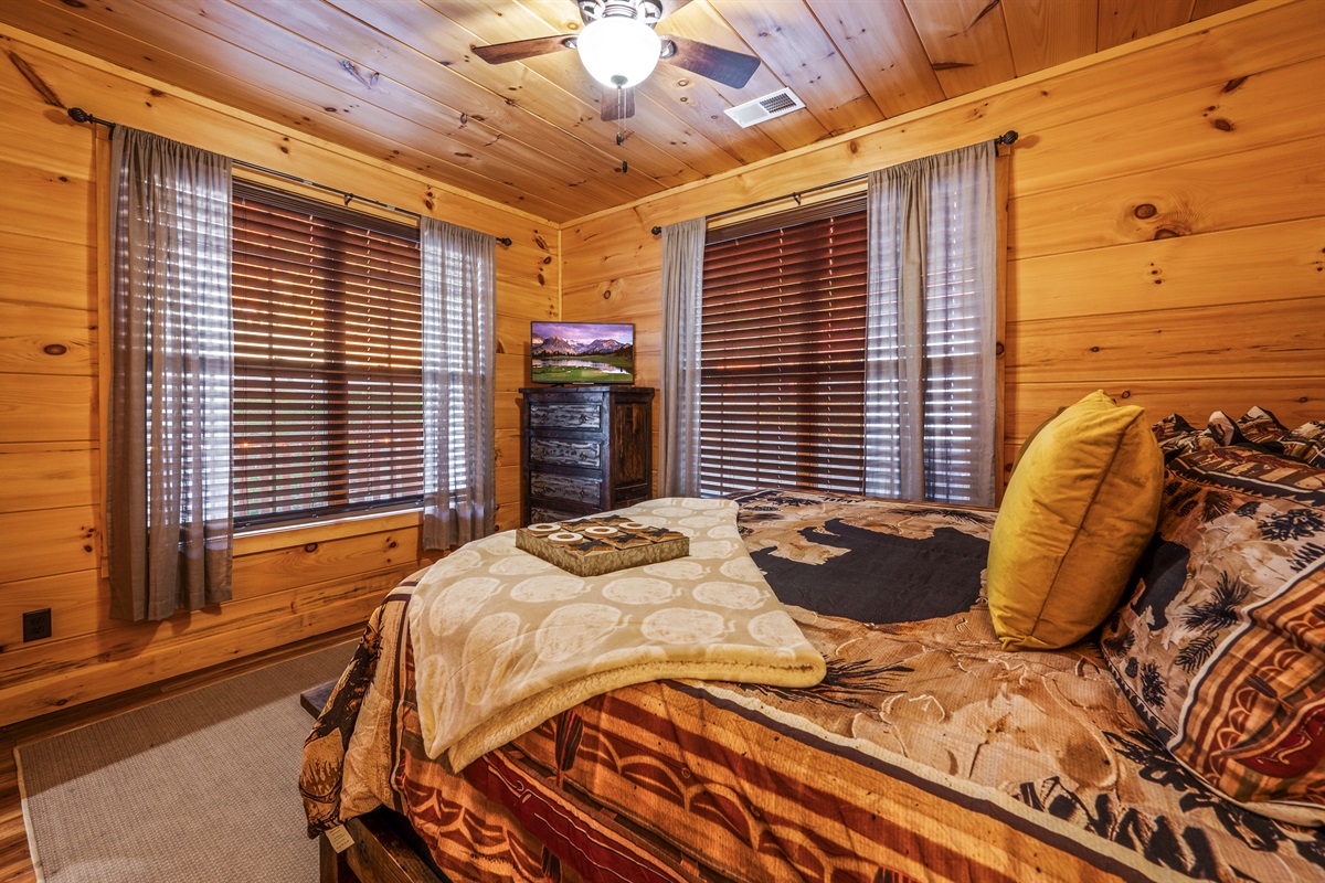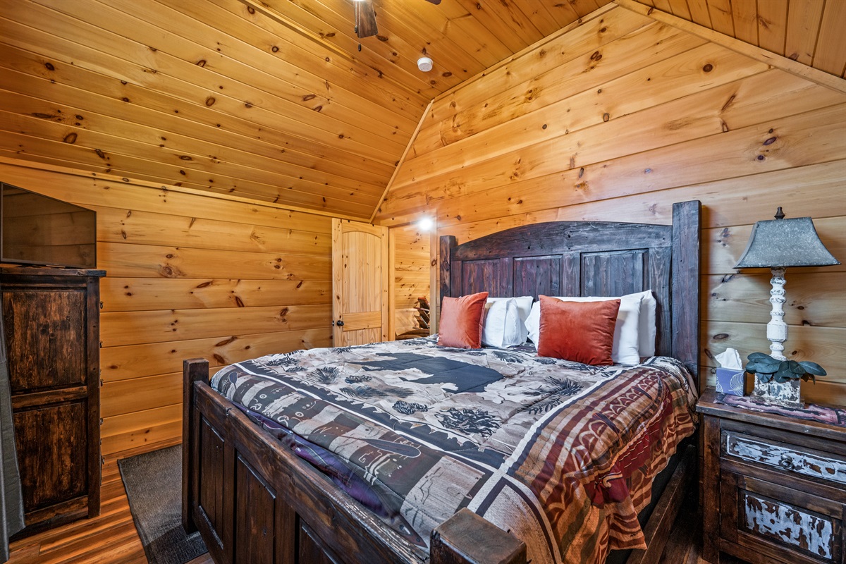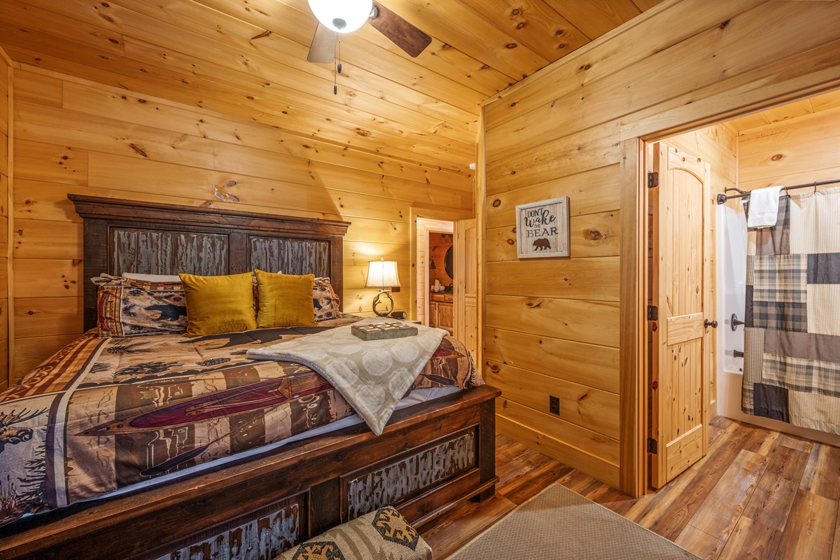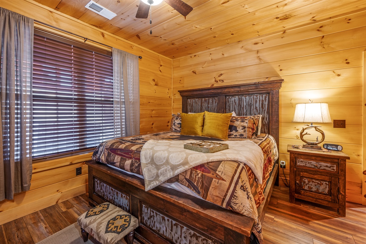 Main Level: King master suite with ensuite bathroom + bunk room (queen/twin).