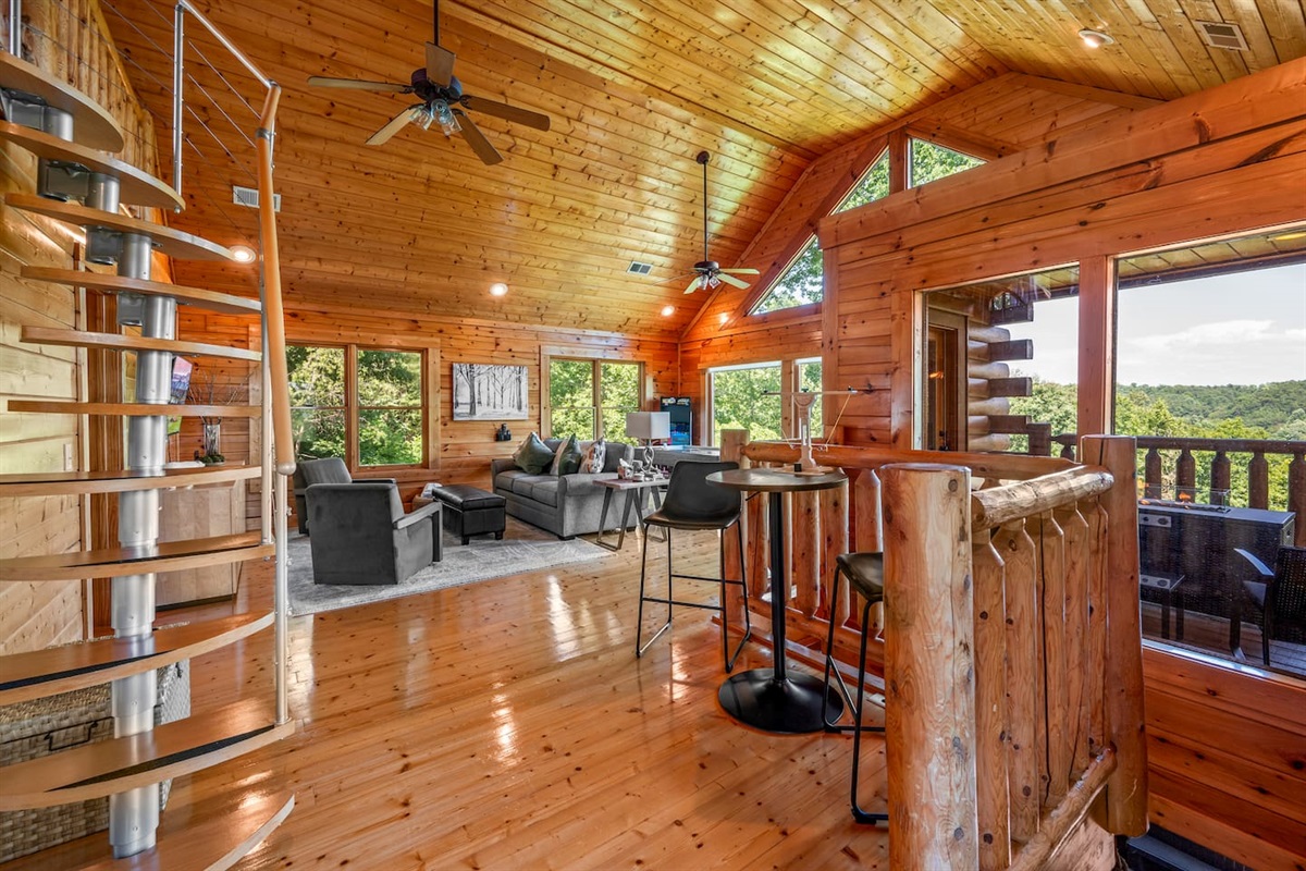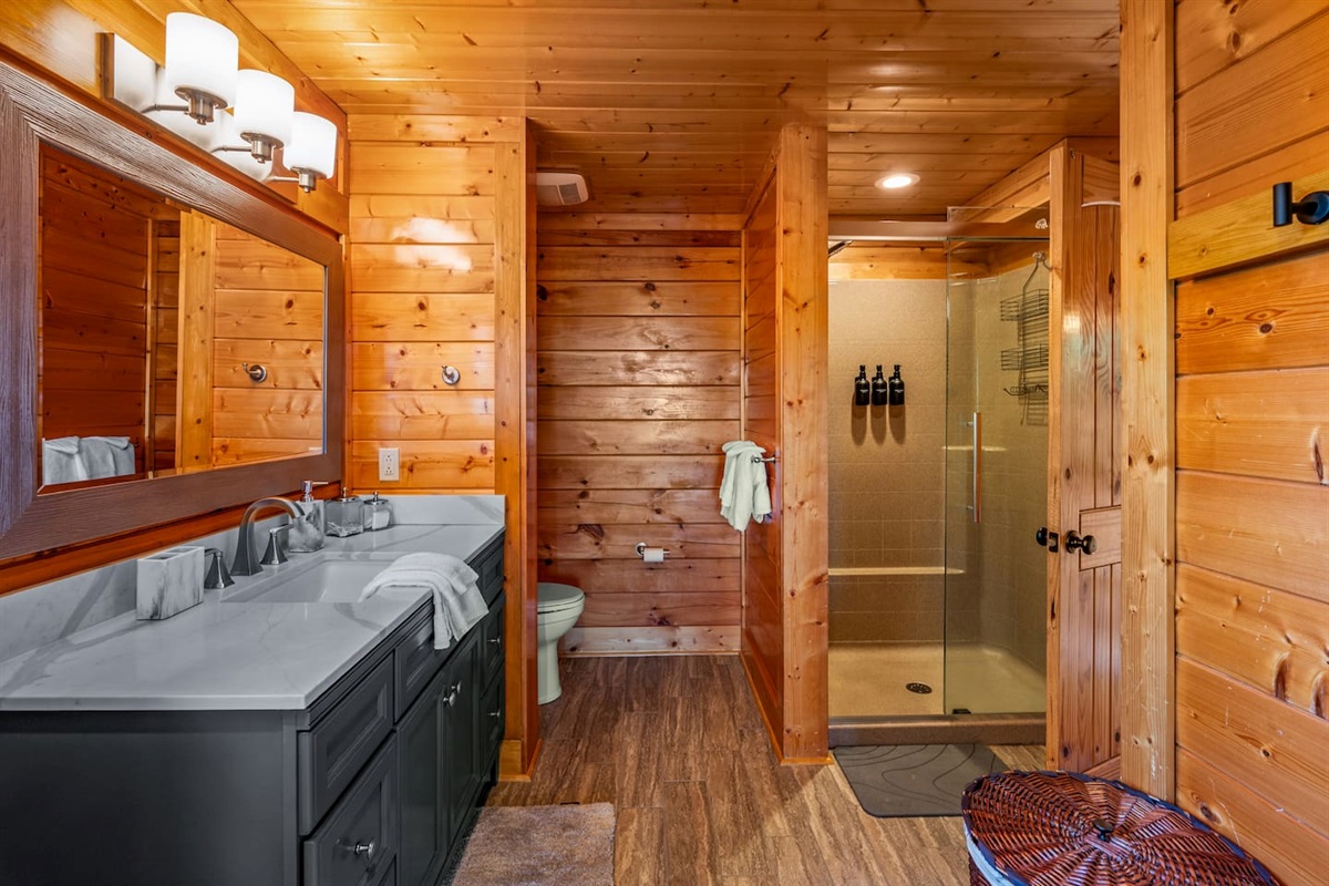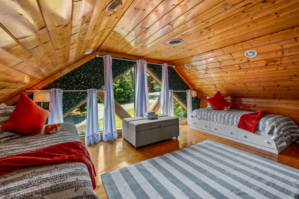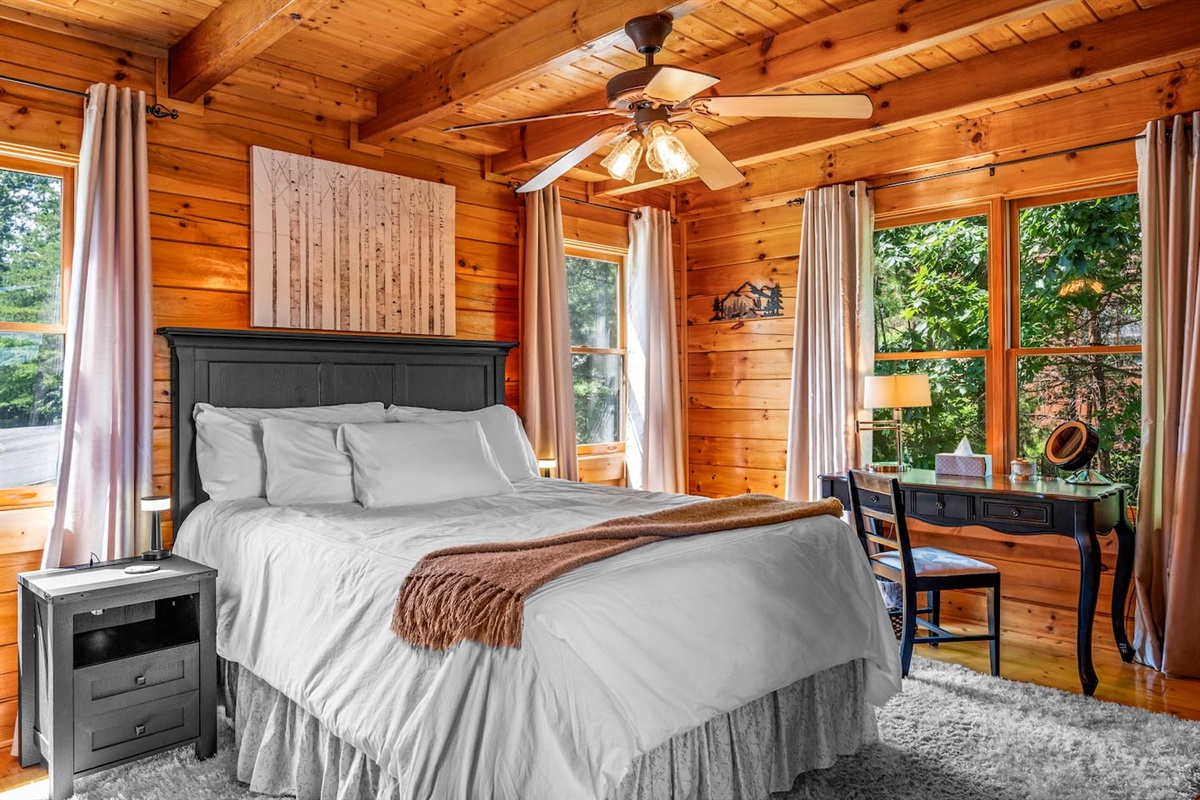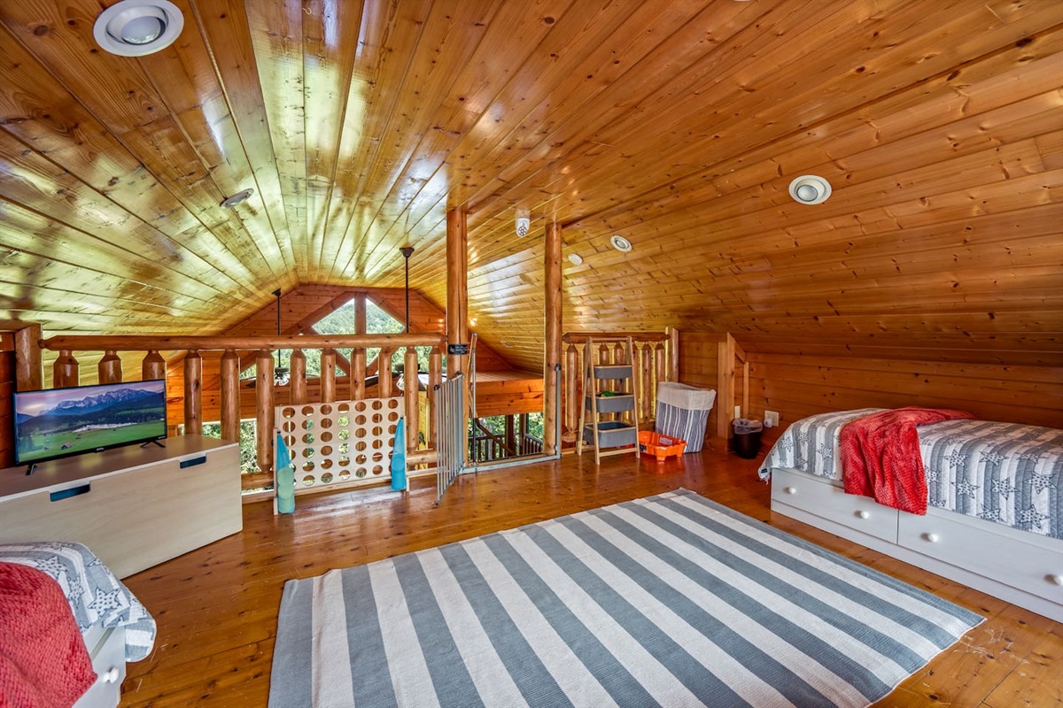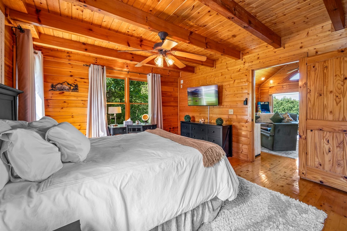 From the moment you arrive, you’ll be impressed by the balance of rustic cabin style and modern upgrades. The open living area features comfortable seating, warm wood interiors, a cozy fireplace, and smart TVs for movie nights or catching up on your favorite shows. Fast WiFi keeps everyone connected, while the fully equipped kitchen makes meal prep a breeze with stainless steel appliances, a full-sized refrigerator, oven, microwave, dishwasher, and even a Nespresso machine.