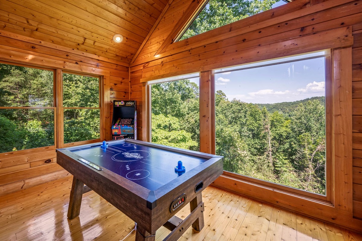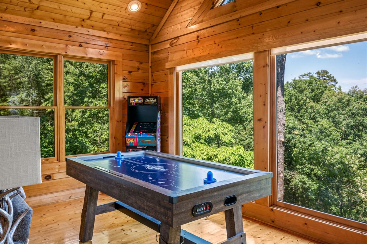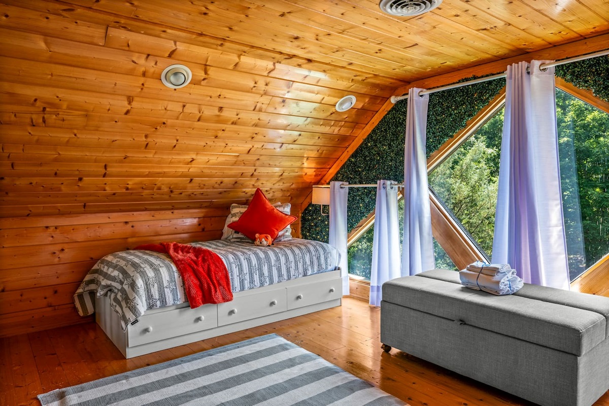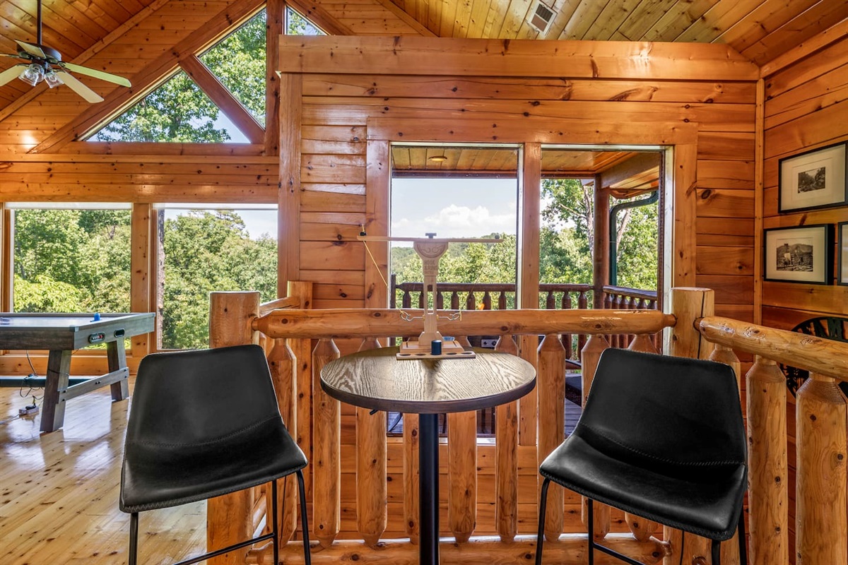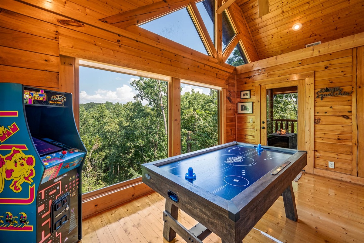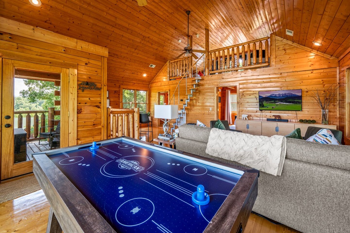 One of the highlights of Little Bear Getaway is the private custom putt-putt course located right in your yard. Families love challenging each other to mini-golf tournaments without ever leaving the cabin. When the sun sets, gather around the outdoor fire pit for s’mores, laughter, and stargazing. A private hot tub with wooded and mountain views adds the perfect touch of relaxation after a day of adventure.