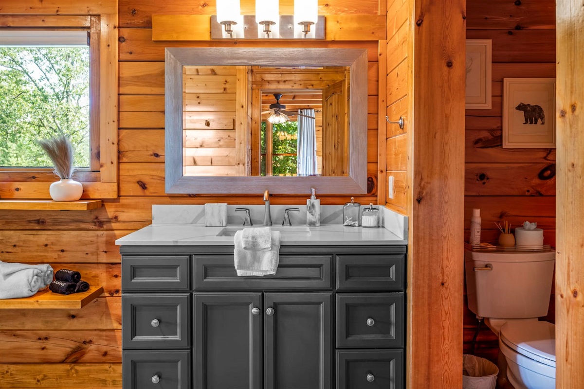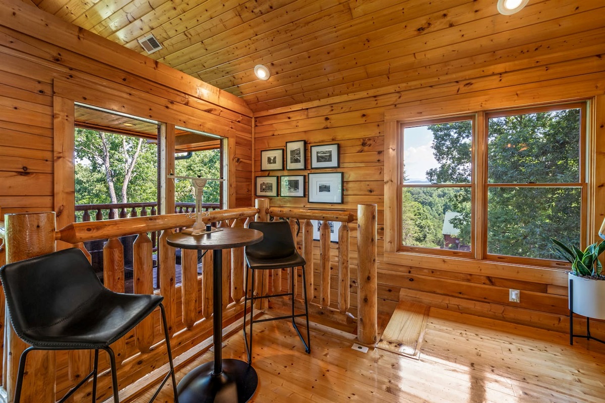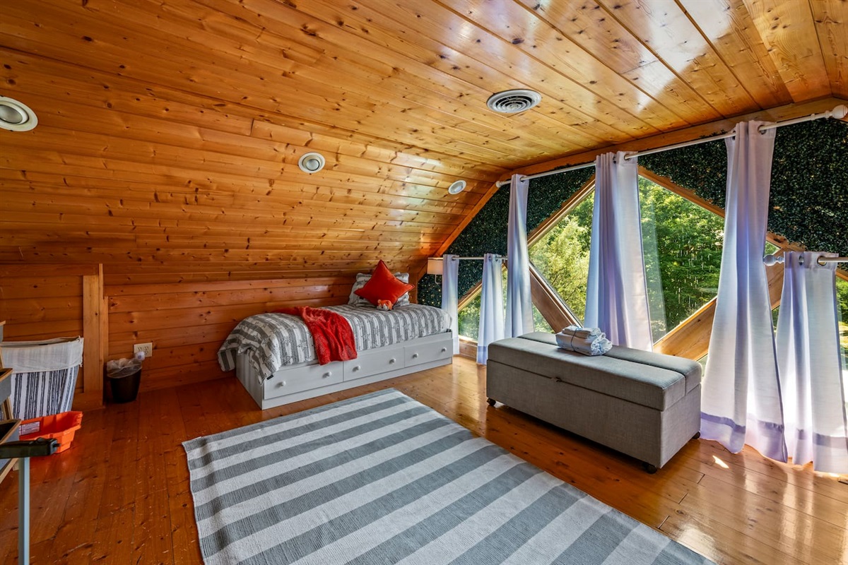 Middle Level: King suite with private bathroom + queen sofa sleeper in the entertainment area