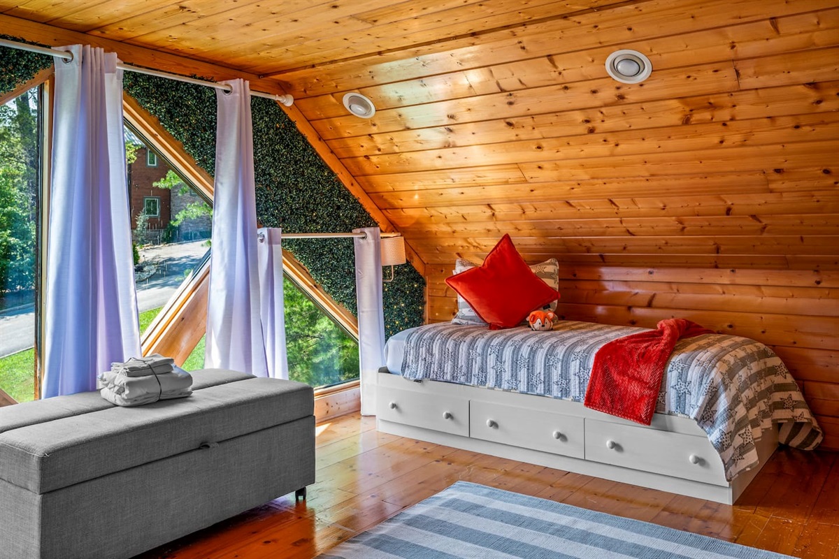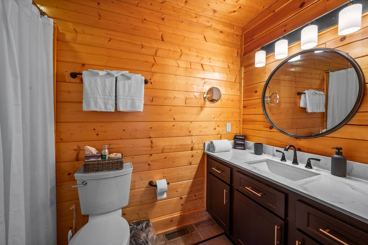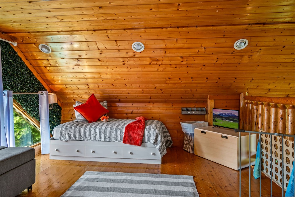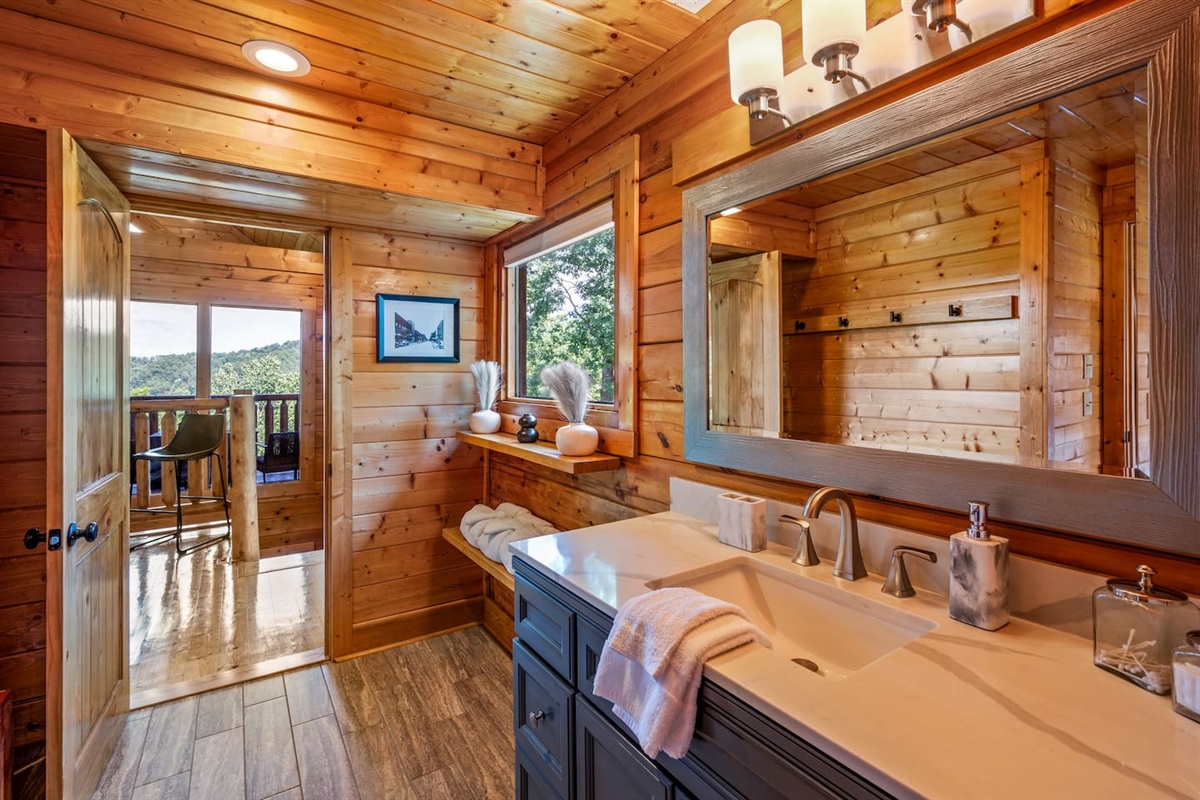 Middle Level: King suite with private bathroom + queen sofa sleeper in the entertainment area